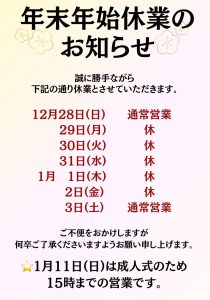 誠に勝手ながら下記の期間をお休みとさせていただきます。